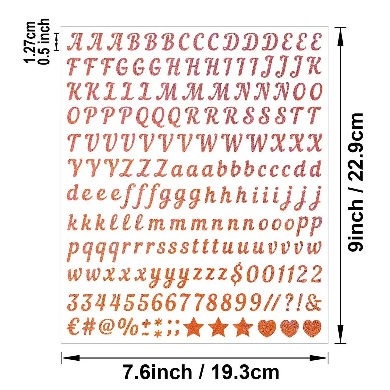 Include un set complet de 26 de litere mari în limba engleză și numere de la 0 la 9, împreună cu simboluri de bază, permițând combinarea liberă pentru a scrie cuvinte, nume, numere etc. Acoperă diferite scenarii, cum ar fi decorarea jurnalului, cuvintele tematice pentru petrecere, decorarea cadourilor și bricolaj, satisfacând nevoile multiple de utilizare cu un autocolant.