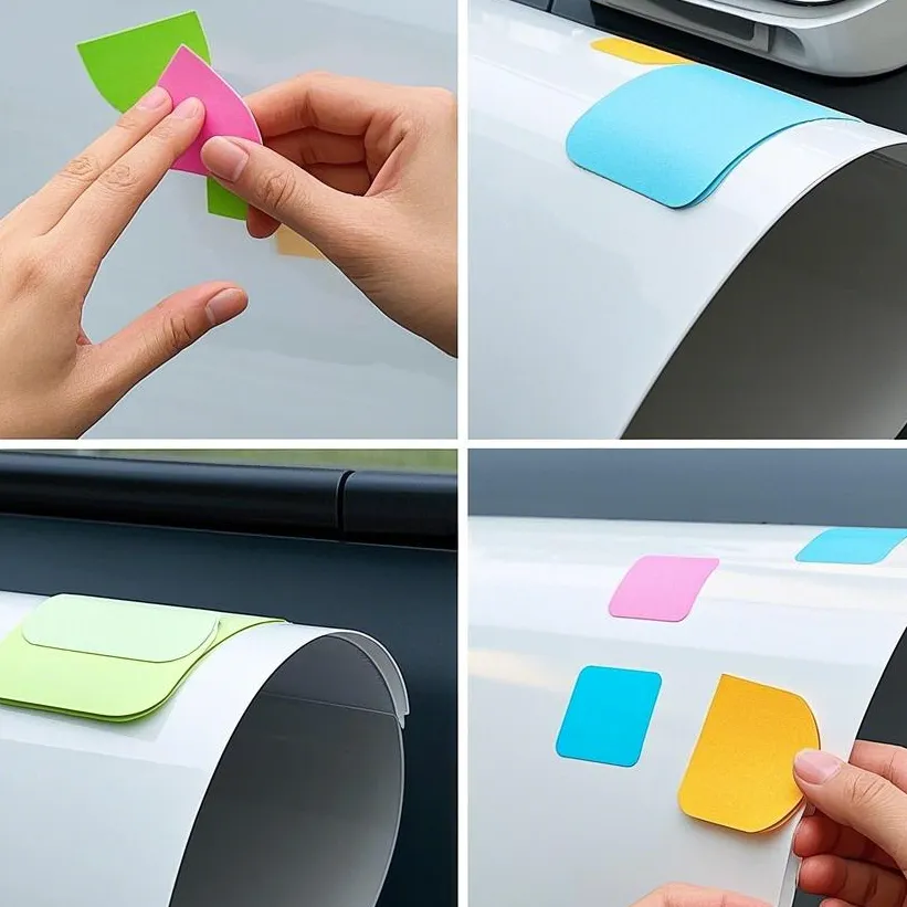 Lipirea autocolantelor:Când lipiți autocolante colorate, rupeți -le încet dintr -un colț și apăsați -le încet cu mâna pentru a descărca aerul pentru a vă asigura că autocolantele se pot potrivi complet cu suprafața.
