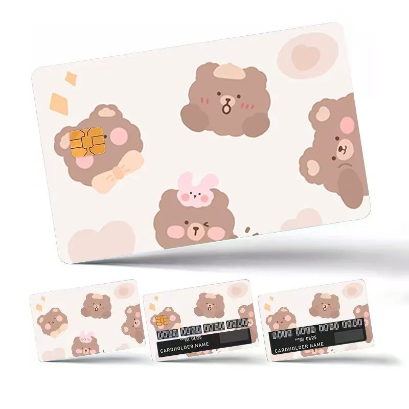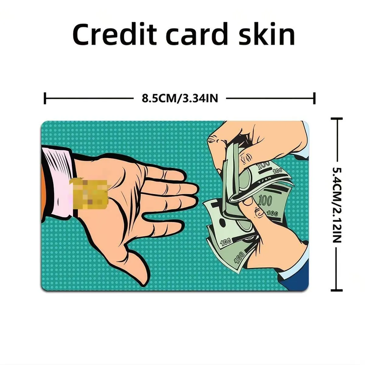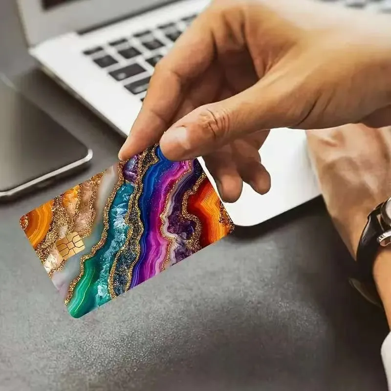 Cele mai recente autocolante pentru cărți de credit vândute sunt o peliculă de suprafață special concepută pentru carduri de credit. Este ușor și are o aderență puternică. Se poate potrivi exact cu dimensiunea cardului de credit. Poate atât decora aspectul cardului, cât și poate oferi protecție de bază pentru card.