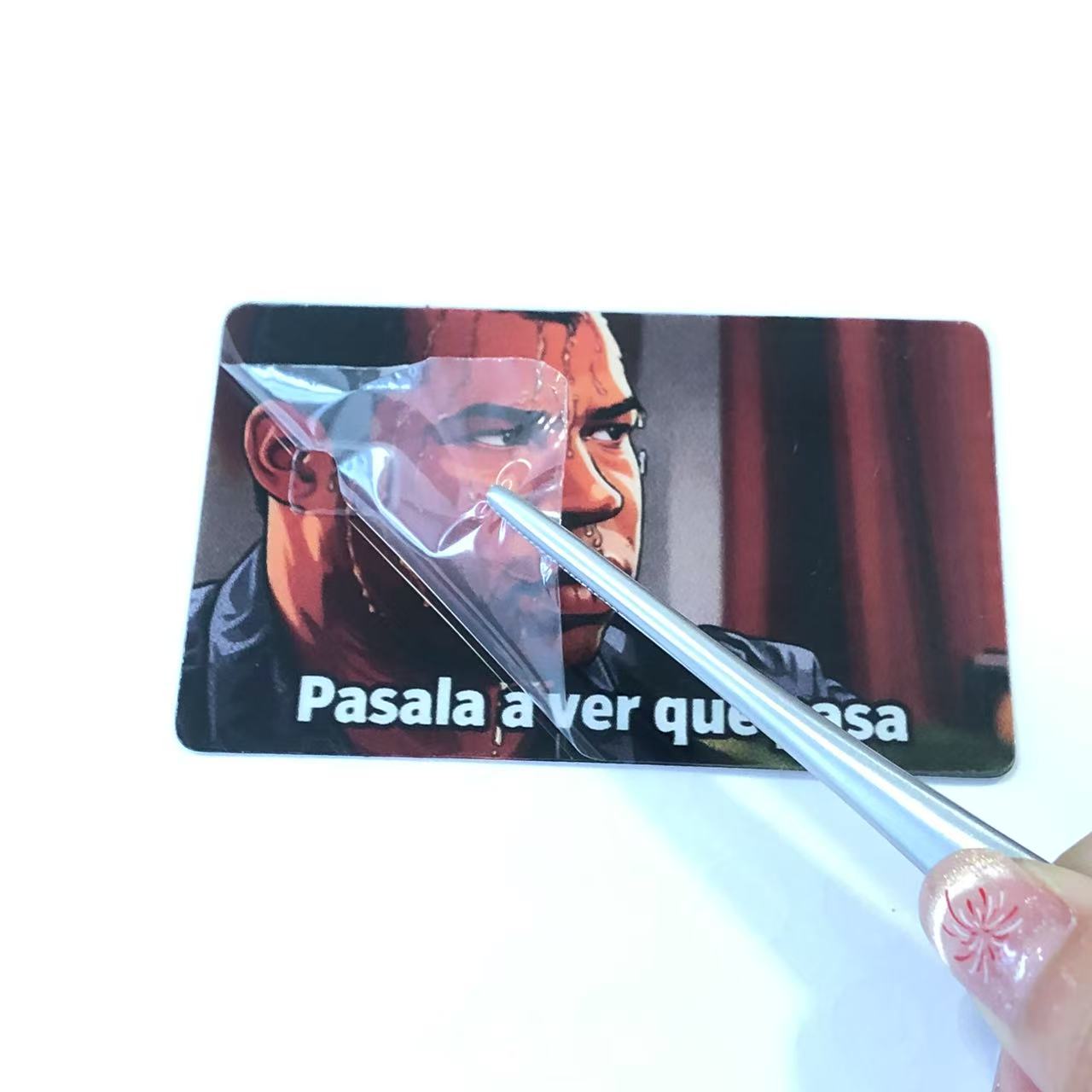 Pentru a asigura calitatea produsului în timpul transportului, fiecare autocolant cu card de credit este echipat cu o folie de protecție la suprafață. Acest strat de protecție protejează eficient autocolantele de zgârieturi, praf și alte daune potențiale care pot apărea în timpul transportului. La primirea mărfurilor, clienții trebuie doar să dezlipească folia de protecție pentru a dezvălui aspectul clar și vibrant al autocolantelor cărților de credit.
