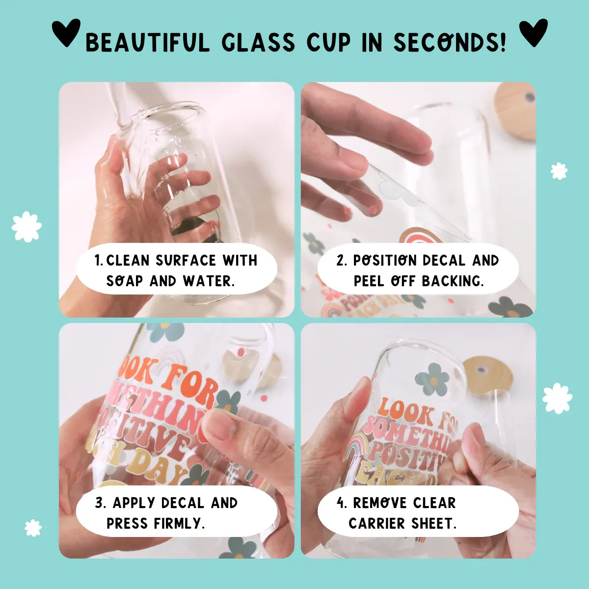 1. Asigurați-vă că suprafața paharului de sticlă de 16 oz este curată, uscată și fără ulei, ștergeți ușor cu tampoane cu alcool sau o cârpă fără scame pentru a îndepărta praful, petele de apă sau grăsimea.