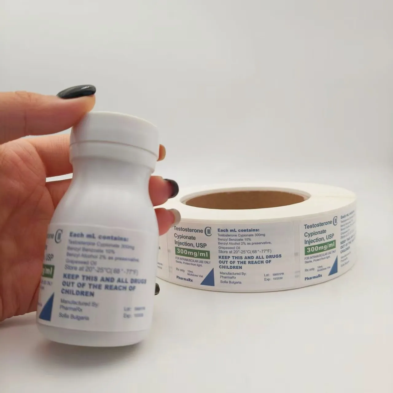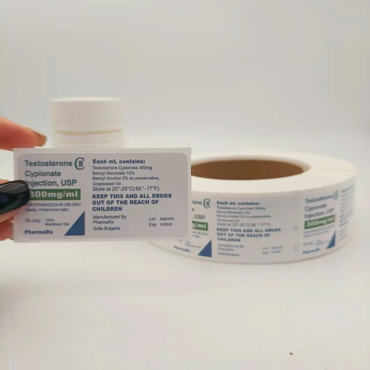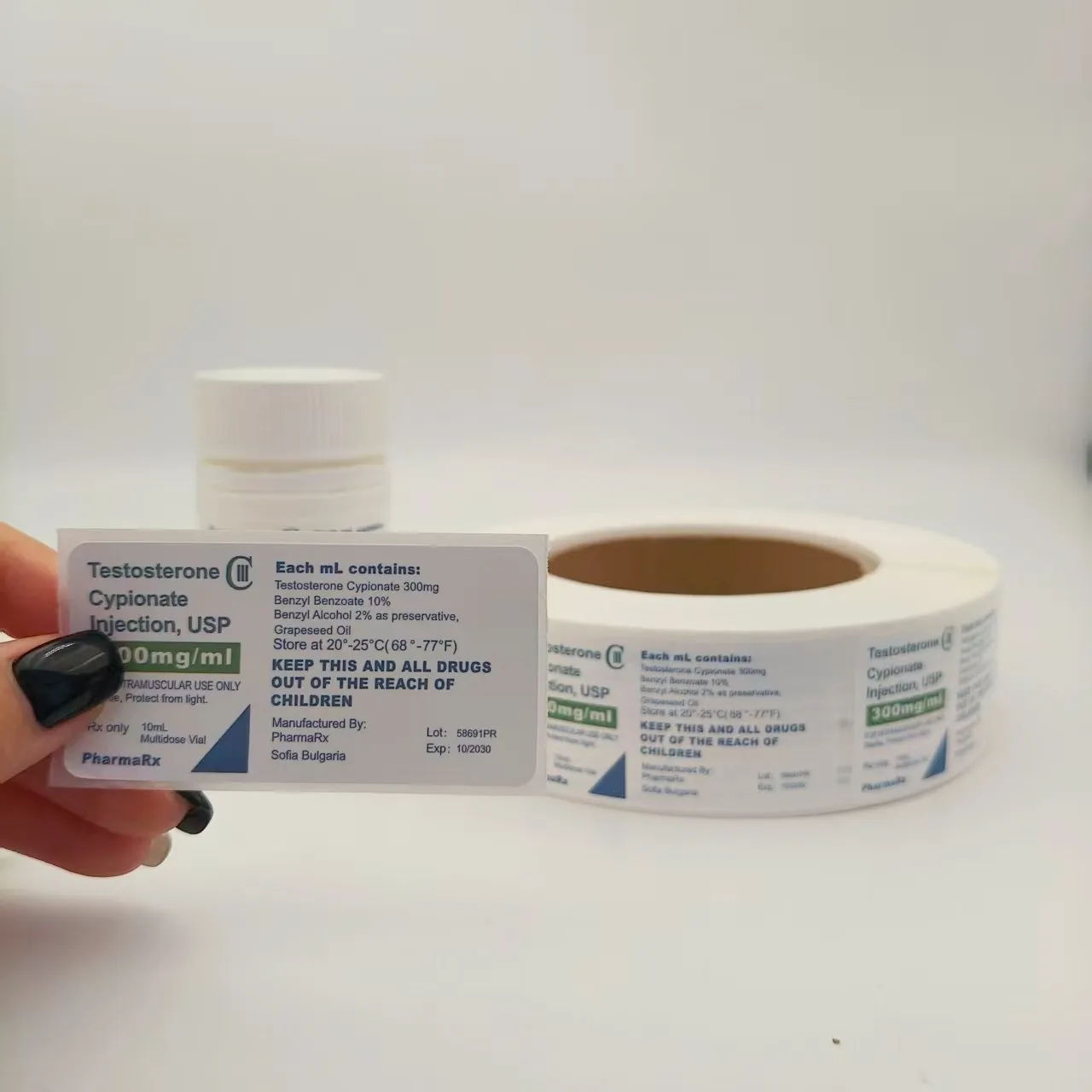 Specificații flaconului: Potriviți diametrul, înălțimea și forma (rotundă, pătrată etc.) flaconului de medicament pentru a vă asigura că eticheta poate fi lipită complet fără a depăși sticla sau a acoperi gura și fundul sticlei.