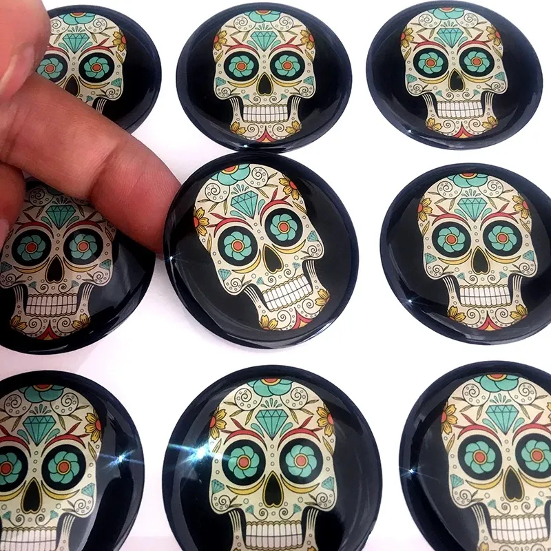 Efect tridimensional unic: printr-un proces special, se formează o cupolă de poliuretan convex pe suprafața autocolantului, prezentând un efect 3D cristal-clar și stereoscopic, ceea ce face ca modelul pe etichetele epoxidice rotunde să fie mai vii și atrăgătoare, îmbunătățind atracția vizuală.