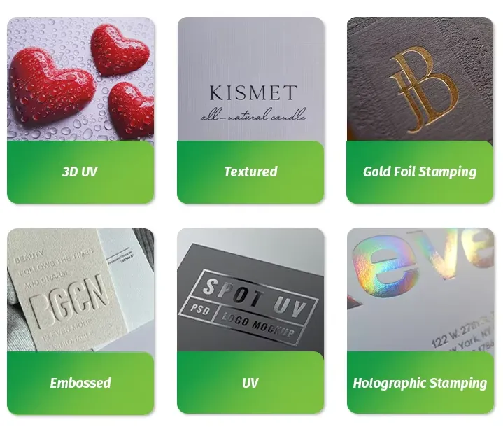 A4: Utilizați imprimare cu contrast ridicat sau finisaje reflectorizante, cum ar fi folie strălucitoare sau folie aurie. Bronzarea elementelor cheie de design îmbunătățește și vizibilitatea împotriva suprafețelor întunecate.