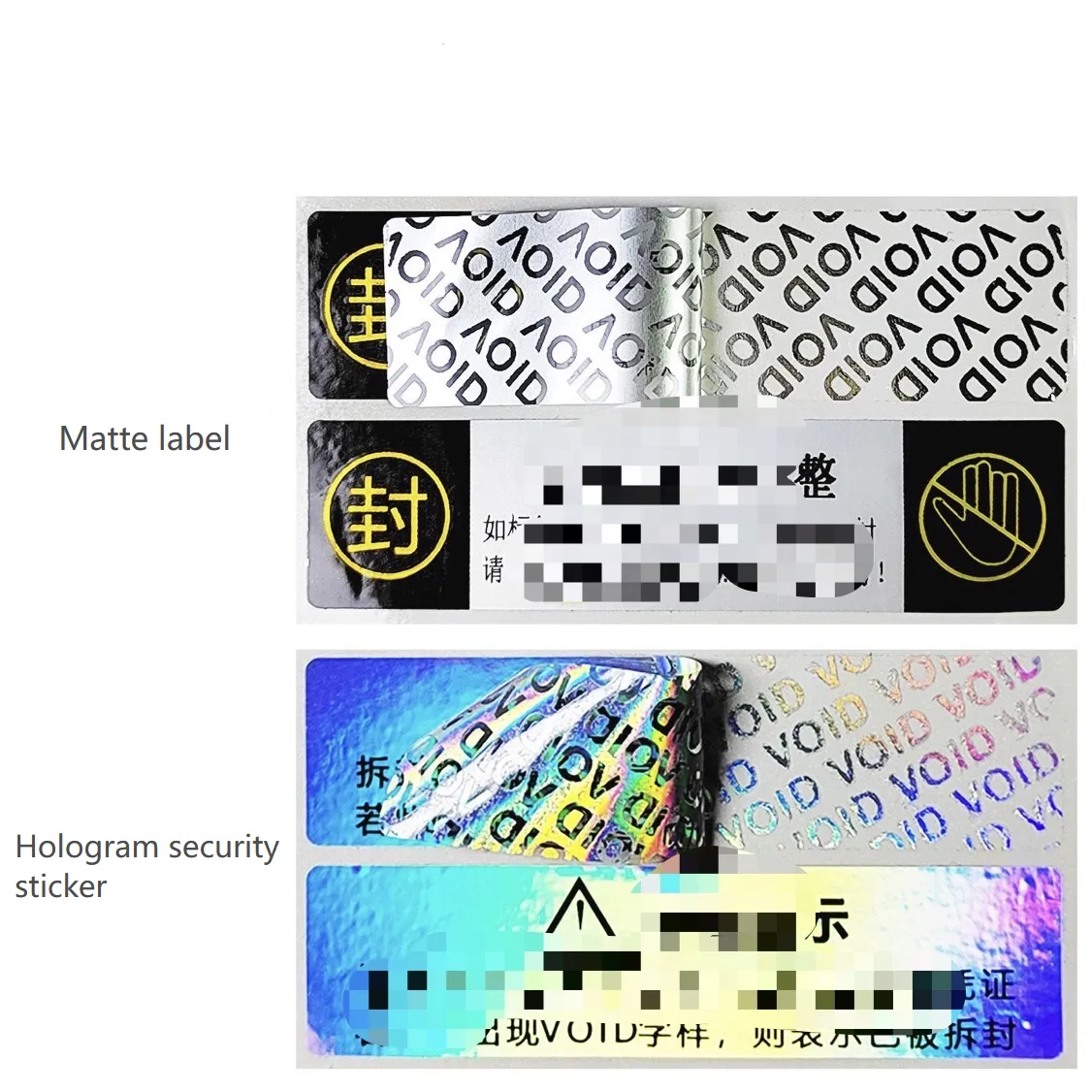Etichetele anti-concurență void sunt un produs de etichetă anti-concurență de înaltă eficiență, produs meticulos de JoJo Pack. Fabricat din materiale și procese speciale, atunci când eticheta este decojită, o marcă „nul” proeminentă va fi lăsată pe suprafața obiectului atașat, servind ca un avertisment că produsul ar fi putut fi modificat sau deschis.