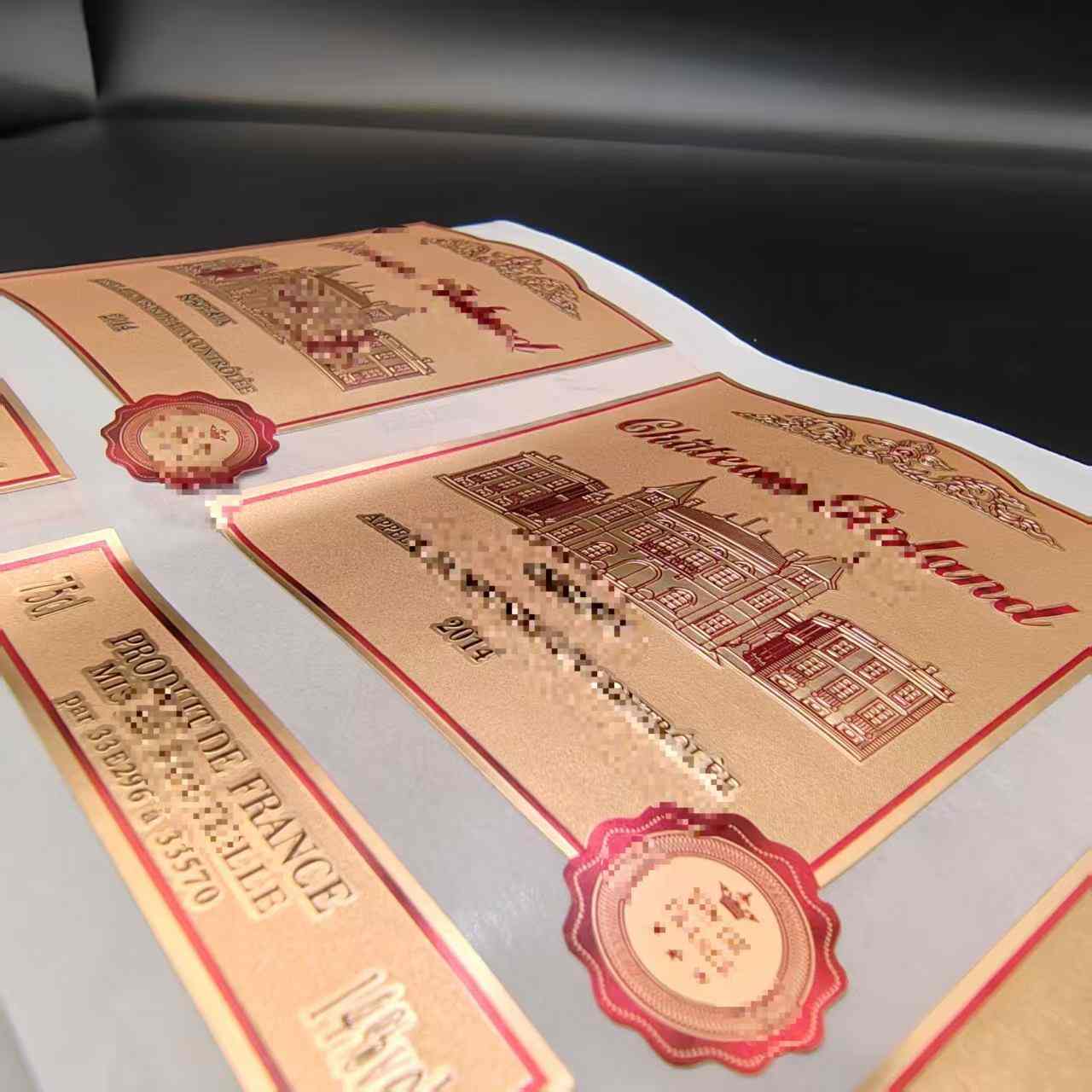 Autocolantele pentru sticle de vin sunt realizate din material PVC de înaltă calitate, etichetele de vin aurite impermeabile din PVC personalizate au o rezistență excelentă la apă și umiditate.