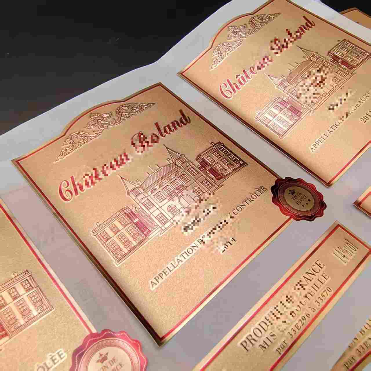 Integrarea aurii adaugă etichetei vinului o textură de lux și elegantă. Indiferent dacă folosește auriu, argintiu sau alte culori metalice de aurire, poate crea un contrast izbitor cu elementele de design ale etichetei (cum ar fi siglele mărcii, modelele sau textul), făcând eticheta să iasă în evidență pe rafturile magazinelor.